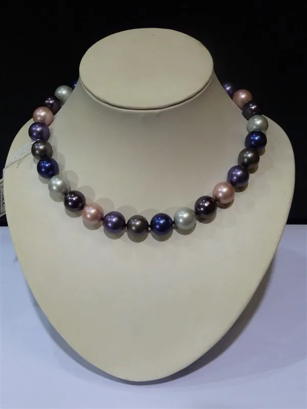 BEST 14MM Big Round Multicolor South Sea Shell Pearl Necklace Aristocratic Sweater chain Women Gift word