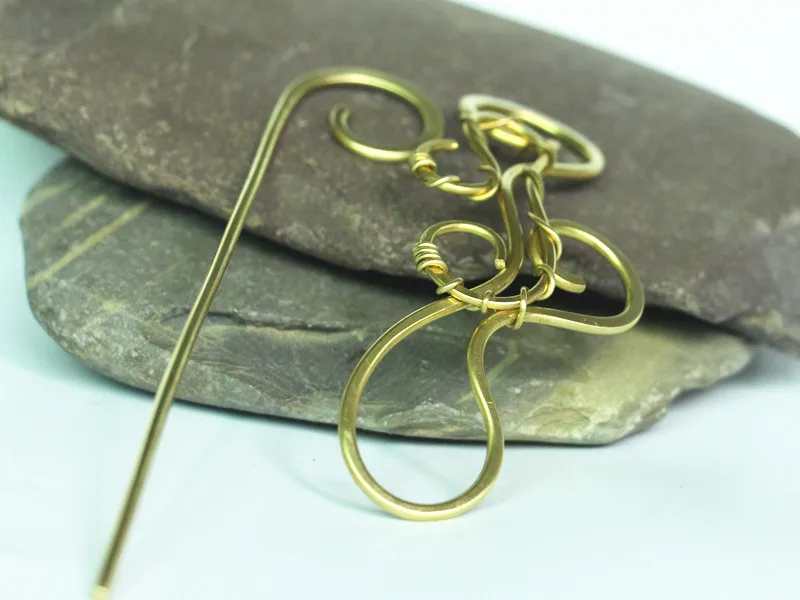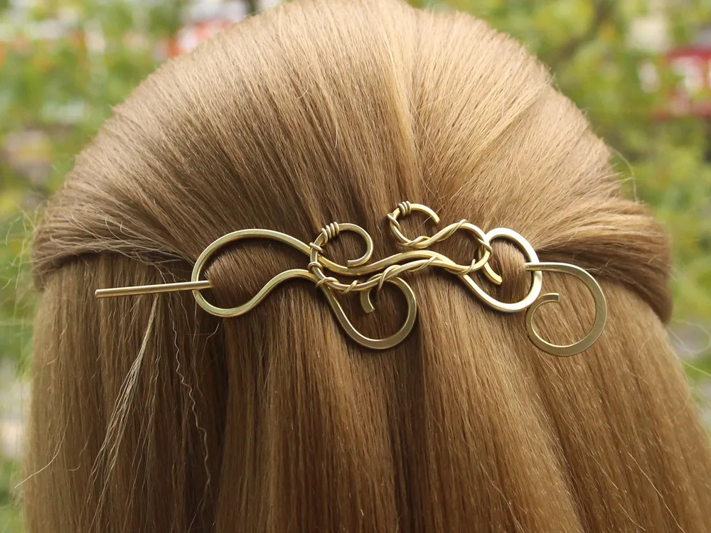 Hammered Gold Brass Hair Barrette Clip with Stick Wire Work Metal Hair Jewelry Unique Accessories f