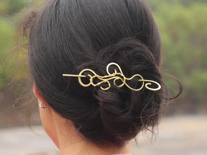 HOT Sale Hammered Gold Brass Hair Barrette Clip with Stick Wire Work Metal Hair Jewelry Unique Accessories f