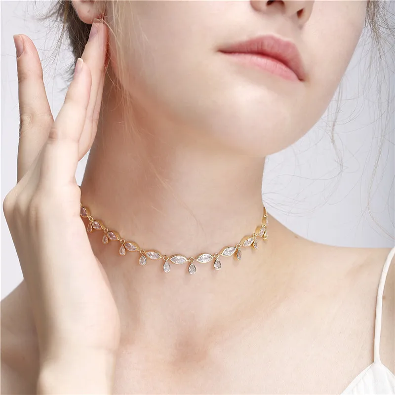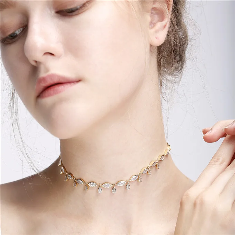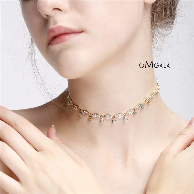 HIGH QUALITY OMGALA Fashion Crystal Choker Necklace Gold Color Shiny Cubic Zirconia Choker For Women Luxury Neck