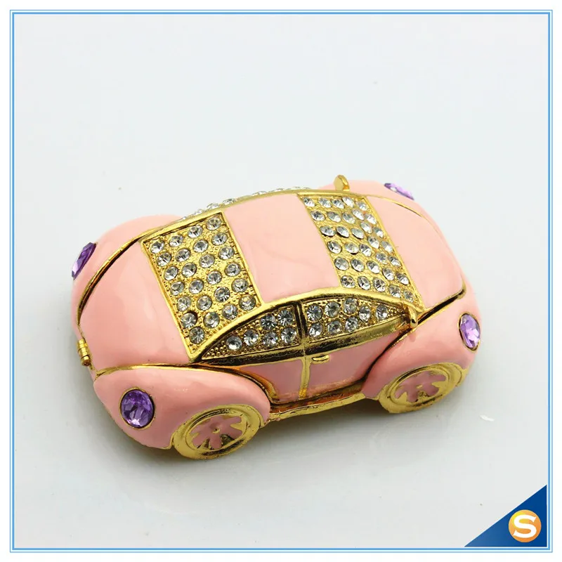 Hand Craft Fashion Metal Car Trinket Box Crystal Decoration Jewelry Storage Box SCJ510