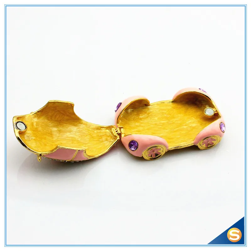 BEST QUALITY Hand Craft Fashion Metal Car Trinket Box Crystal Decoration Jewelry Storage Box SCJ510