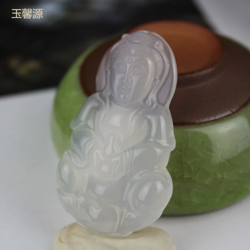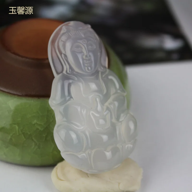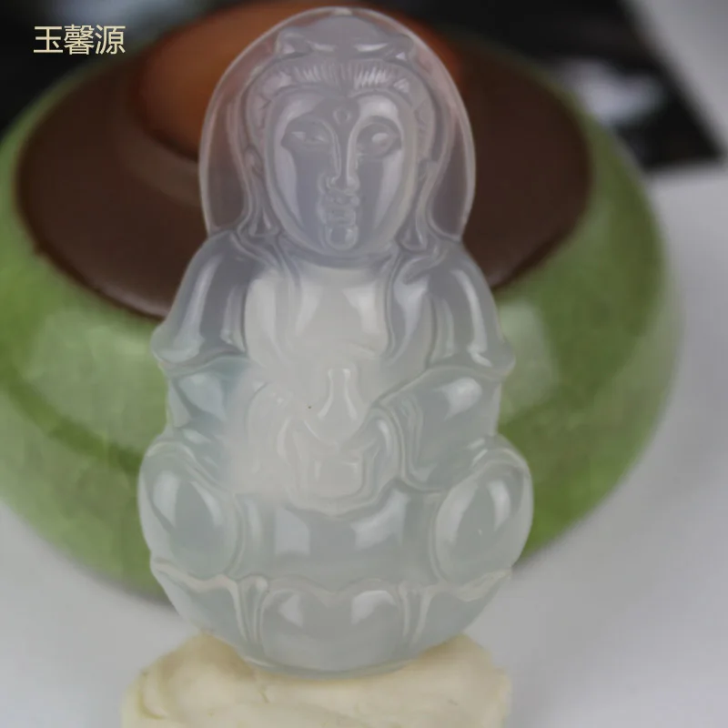 Yu Xin Yuan Fine Jewelry Natural Jade Medullary Hand-made Guanyin Necklace Pendant Lucky Peace Best