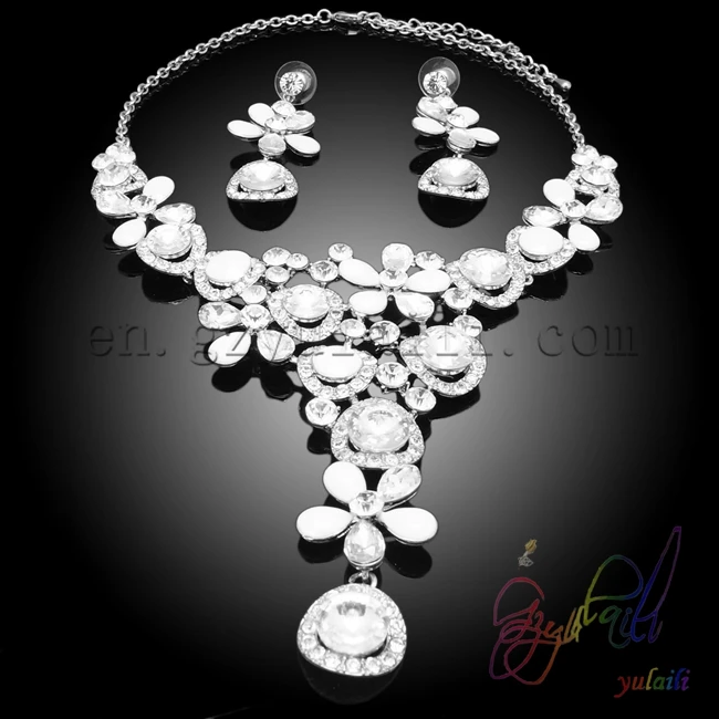 Yulaili White Color flower style Cubic Zircon Copper Ladies Crystal Jewelry Sets