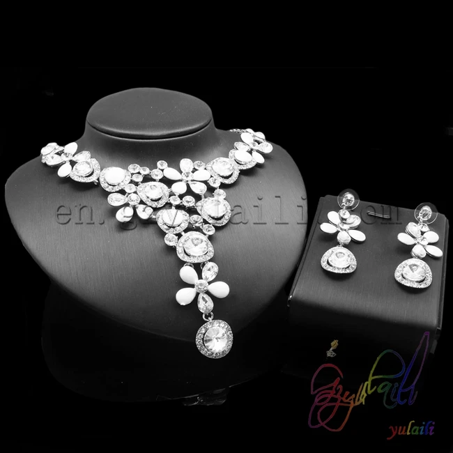 BEST Yulaili White Color flower style Cubic Zircon Copper Ladies Crystal Jewelry Sets