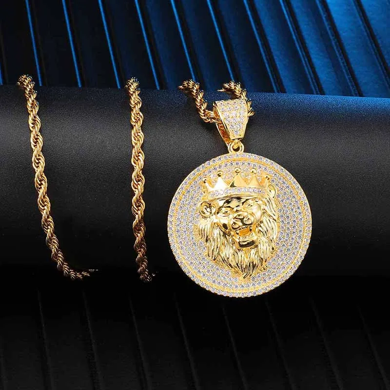 BEST 2019 Fashion Bling Micro Paved Zircon Lion Head Pendant Necklace for Male Rock Rapper Jewelry Drop