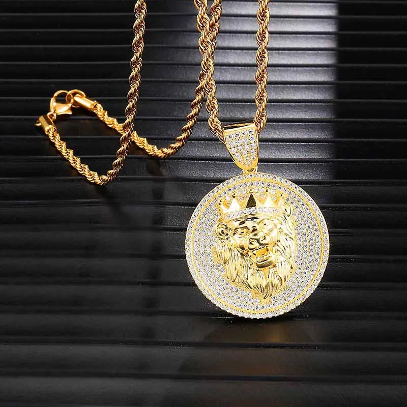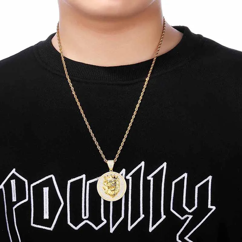 2019 Fashion Bling Micro Paved Zircon Lion Head Pendant Necklace for Male Rock Rapper Jewelry Drop
