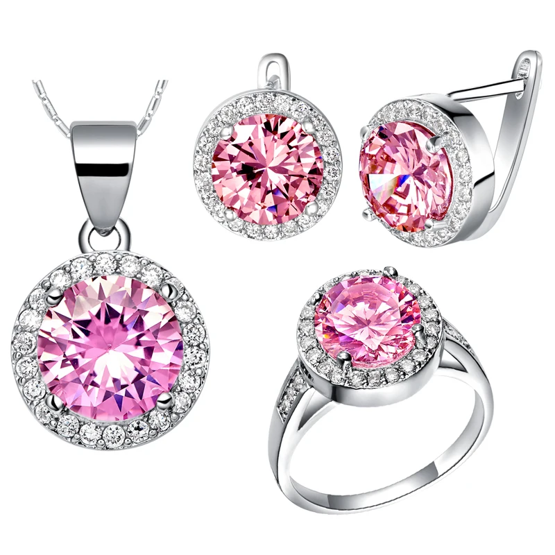 African jewelry sets round CZ pink jewelry set for brides women neckalce&earrings&ring wedding acce
