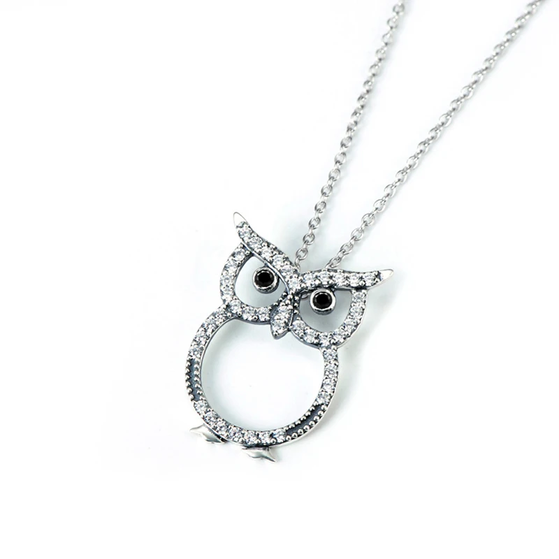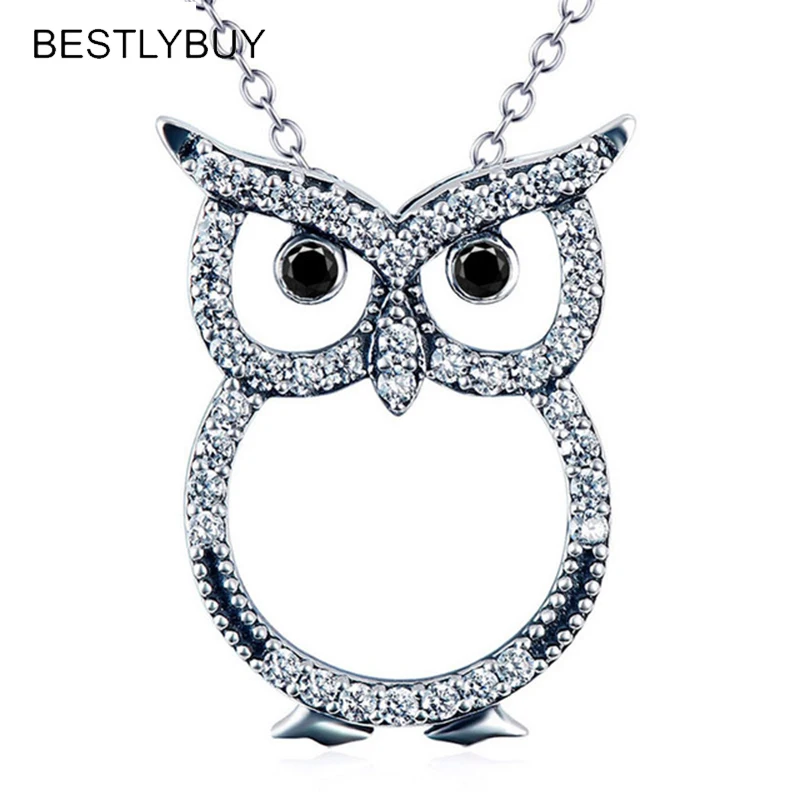 HOT Sale BESTLYBUY Genuine 925 Sterling Silver Cute Owl Pendants Necklaces Female Necklace Choker Jewelry Gi