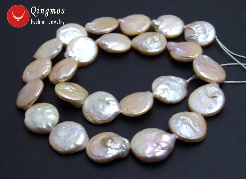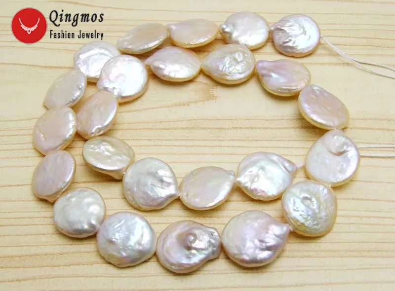 HIGH QUALITY Qingmos Pink Freshwater Pearl Beads for Jewelry Making with 14-15mm Coin Natural Pearl Beads for Be