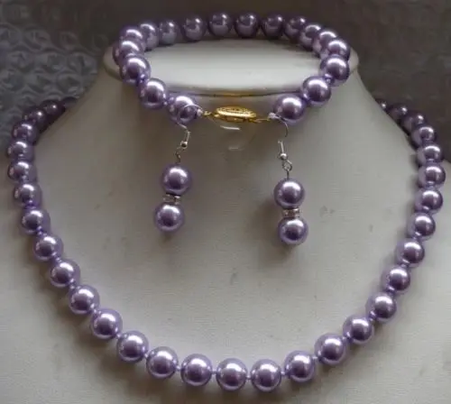 ORIGINAL Women's Wedding shipping> >>>>>10MM round lavender south sea shell pearl necklace Bracelet Earring