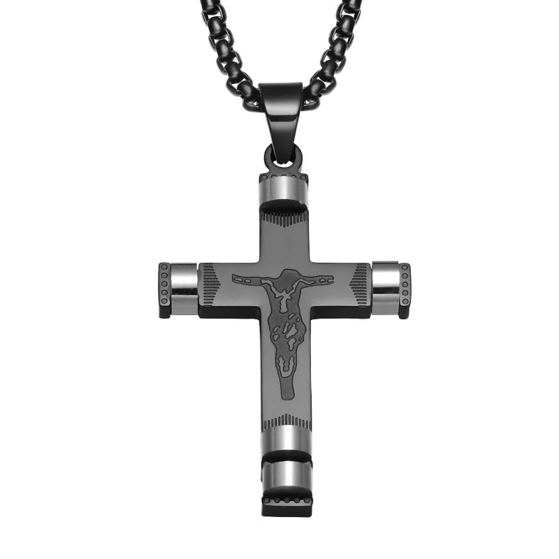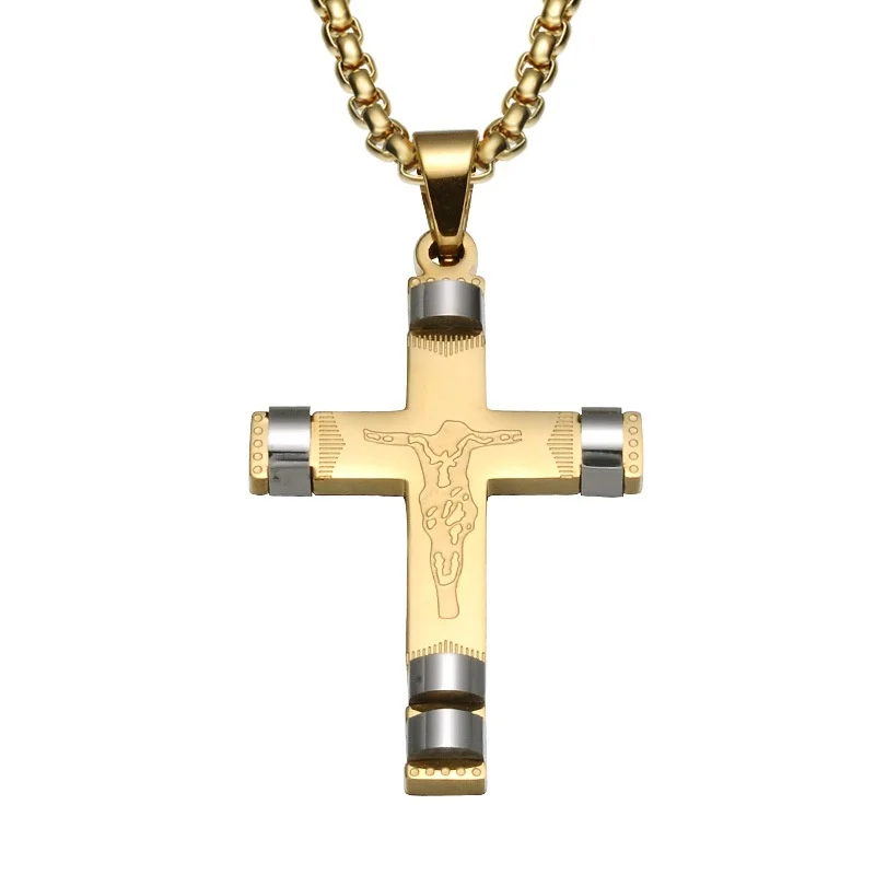 Best Quality 3 Color Men Stainless Steel Cross Necklace Pendant European and American Style Religious Jewelry Gi