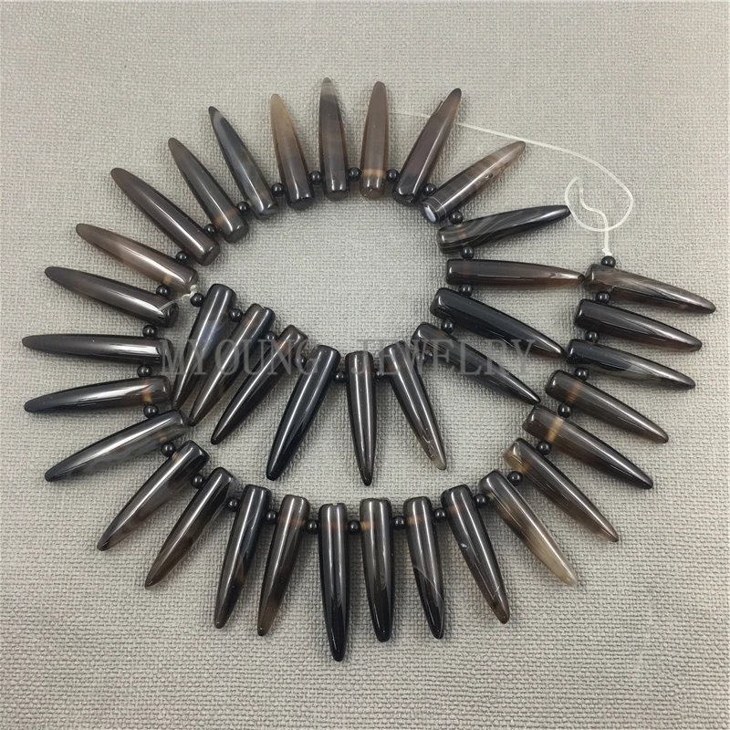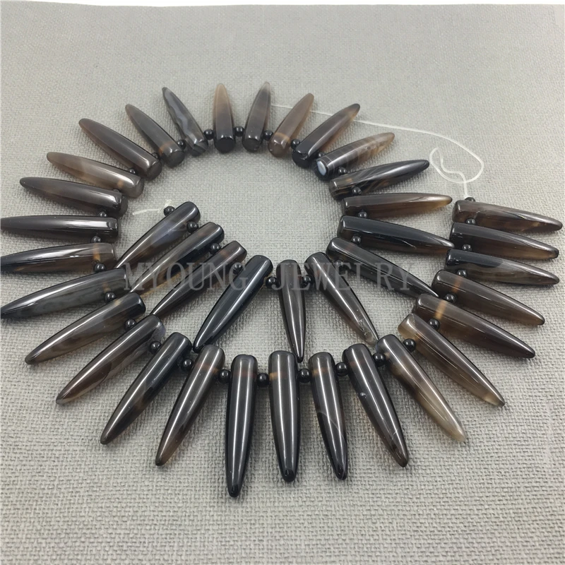 TOP MY1173 Brown Polished Clear Agates Point Stick BeadsSpike Point Drilled Beads For Jewelry