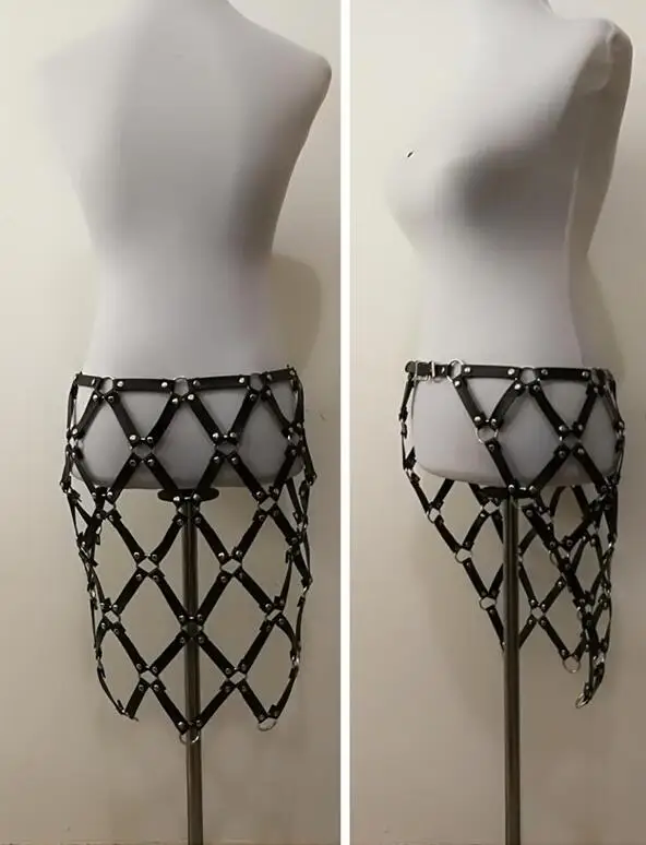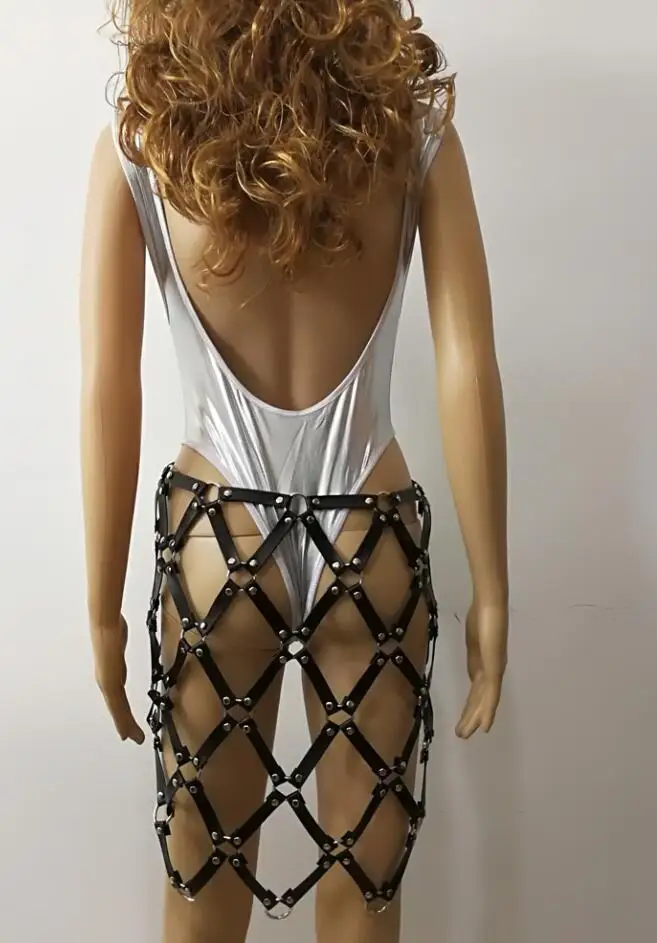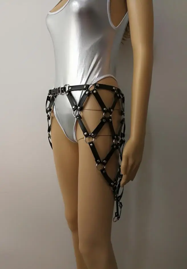 ORIGINAL New Fashion Style WRB999 Women Leather Harness Bondage Beach Waist Belly Leather Dress Silver Chain