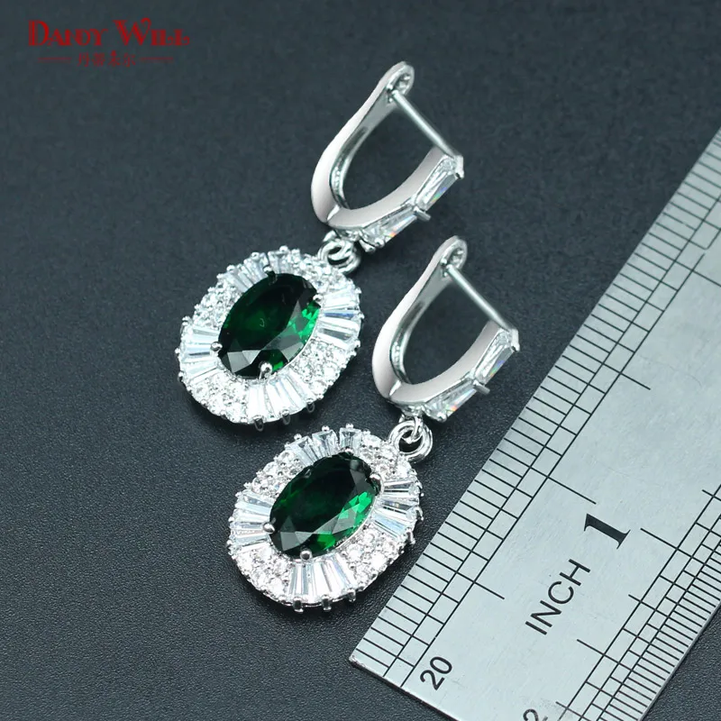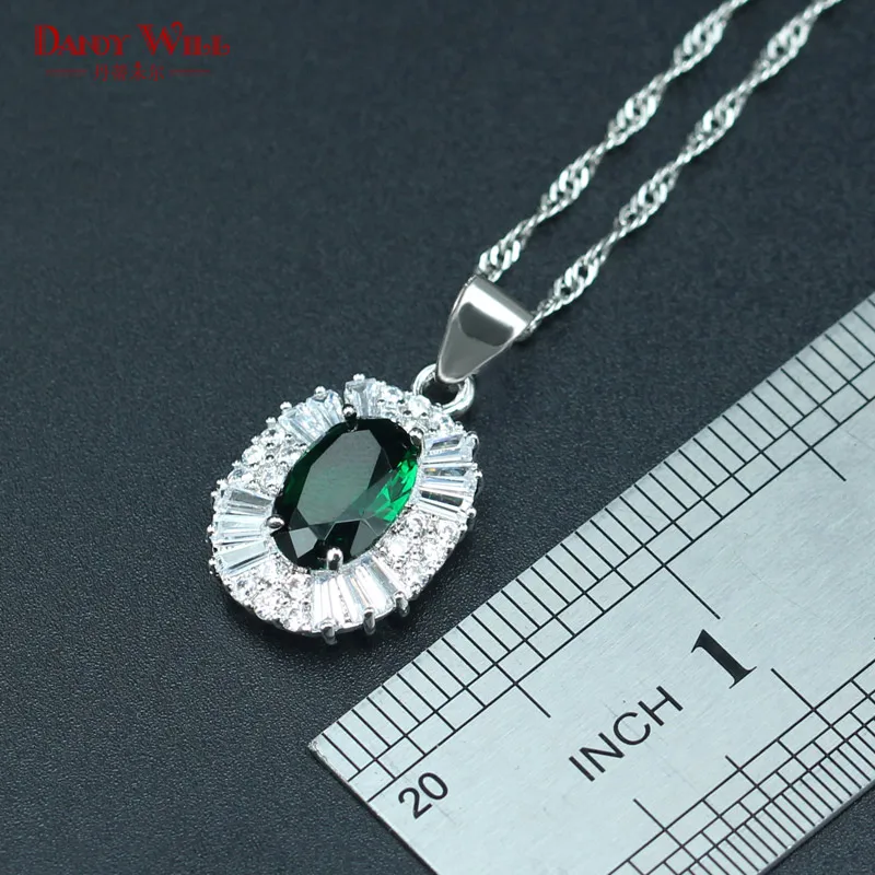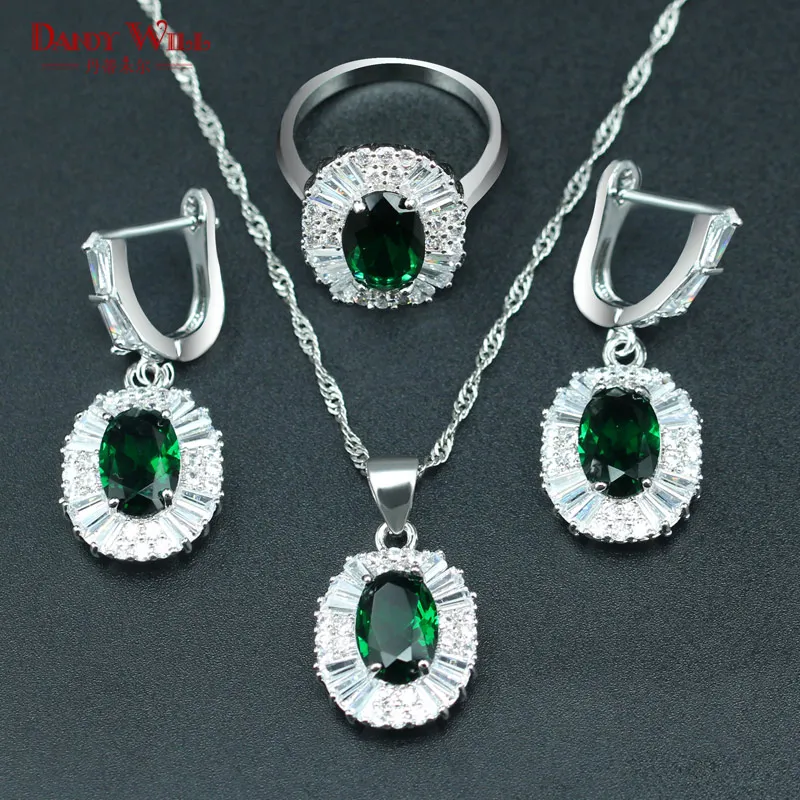 Review DANDY WILL Hot sale Bridal Jewelry Sets For Women Green Zircon Silver Color Necklace Earrings Ring