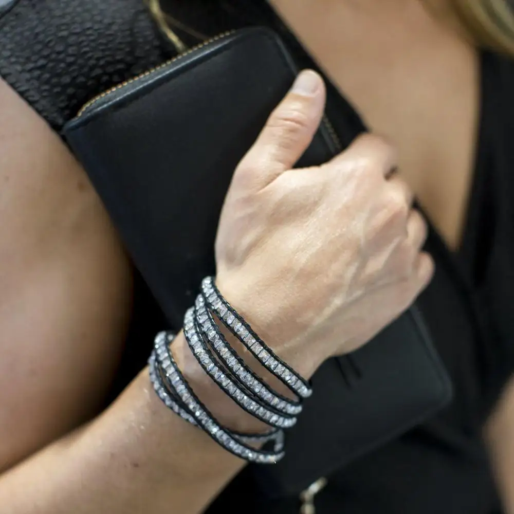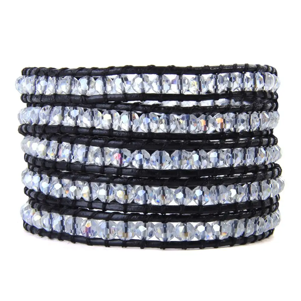 KELITCH Crystal Beaded 5 Wrap Bracelets Bangles Handmade Vintage Women Strand Cuff Bangles For Love