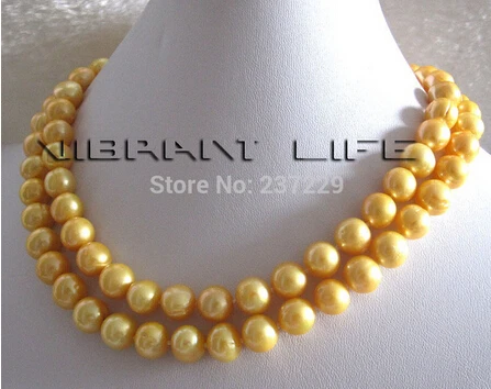 BEST SELLER 32" 9 mm Golden Freshwater Pearl Necklace Strand Jewelry Fashion>jewelry Quartz Crystal Women Weddi