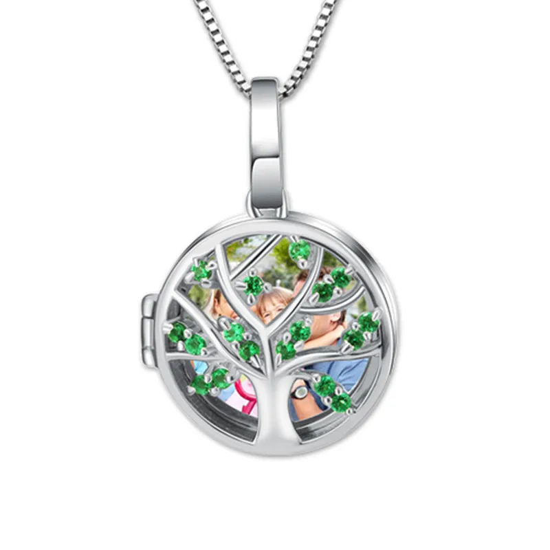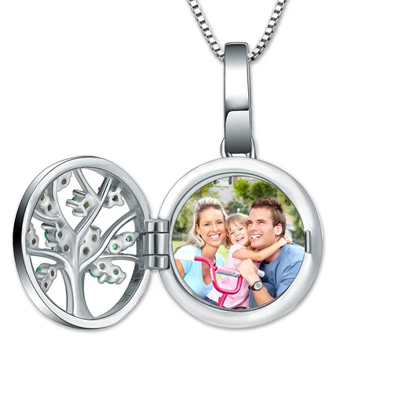 TOP Wholesale Cusomed Family Tree Round Photo Necklace for Mother Sterling Silver Photo Jewelry